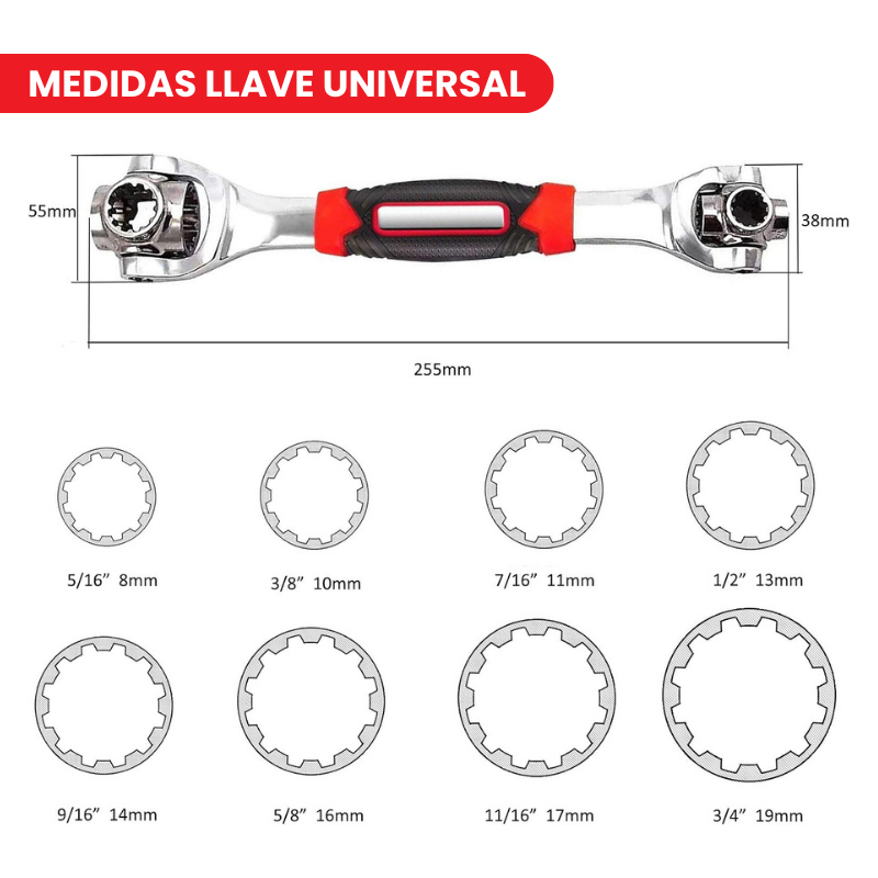 Te obsequiamos una llave universal con 48 posiciones para cualquier tipo de rosca, lo que lo hace una herramienta indispensable para cualquier actividad, ya sea tu carro, moto o arreglos en tu hogar.