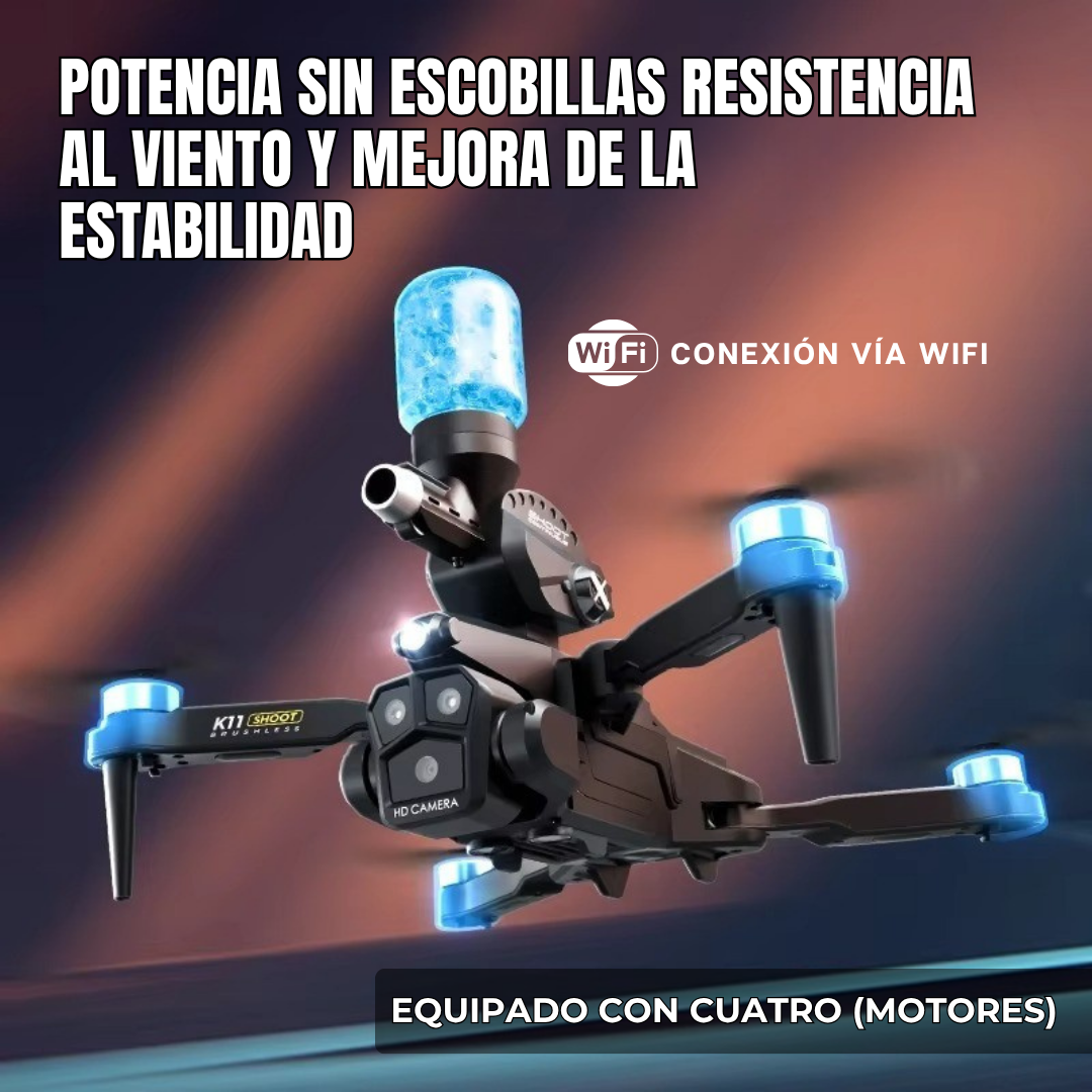 Mientras muchos modelos solo graban o vuelan de forma básica, el K11 combina tecnología 4K, disparo de bolitas de hidrogel y control inteligente, ofreciendo una experiencia mucho más completa y divertida.