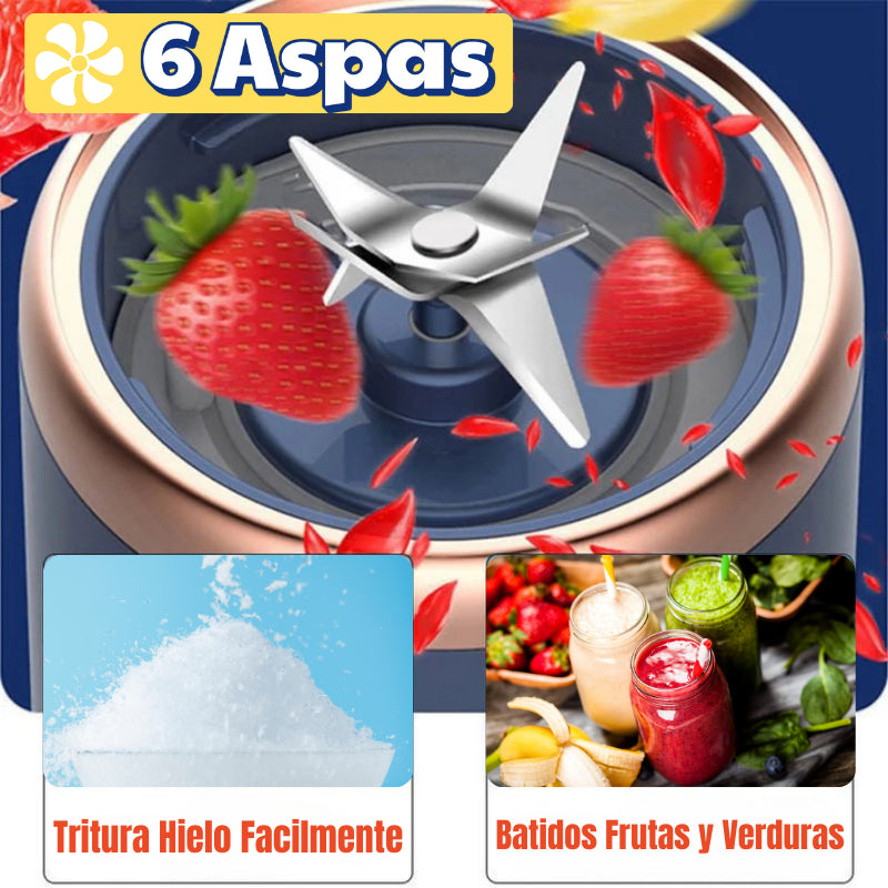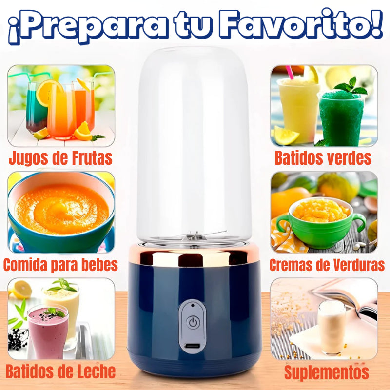 Puedes preparar batidos, jugos y smoothies en cuestión de segundos. Su diseño compacto y recargable te permite llevarla al trabajo, gimnasio o cualquier lugar.